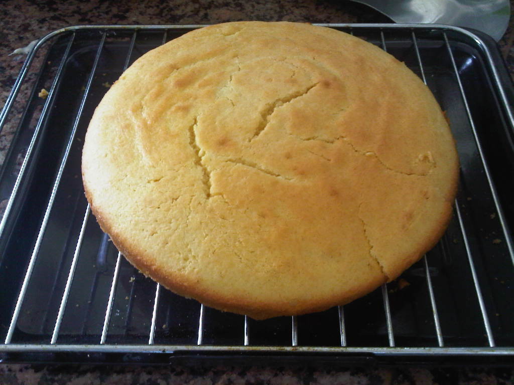 Scrape the mixture in the prepared baking tin and bake in the preheated oven until lightly golden (about 15 min in my oven) and a skewer comes out clean;