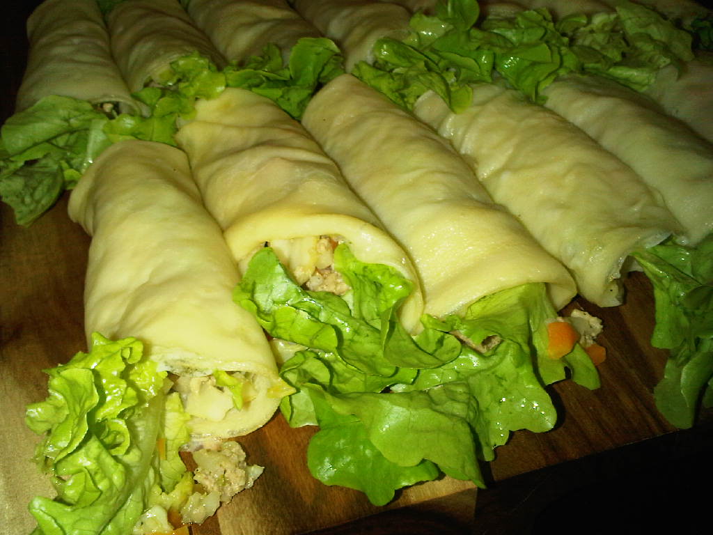 When my Filipino cousin (the husband of the cousin who had sent me the book) saw me preparing the egg wrappers, he commented that he had rarely if ever seen them made from scratch, as I guess they're normally bought - like me buying corn tortillas for Mexican I suppose. It took me a while to get the hang of them, as my instinct was to cook them till slightly brown. These ones need to be still yellow and soft, perfect for rolling. Once I got the hang of it, they came out nicely, although for next time I have to challenge myself to make them a little thinner!