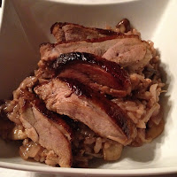 Next course was duck and mushroom risotto, my husband's two favourite ingredients in one of his preferred dishes. This one seemed to work perfectly with just the right amount of lovingly prepared duck stock. It needed a little more seasoning to really bring out the flavours but we happy to add that ourselves as I was a little concerned I would over season the dish, and once that happens, there's no rescuing!