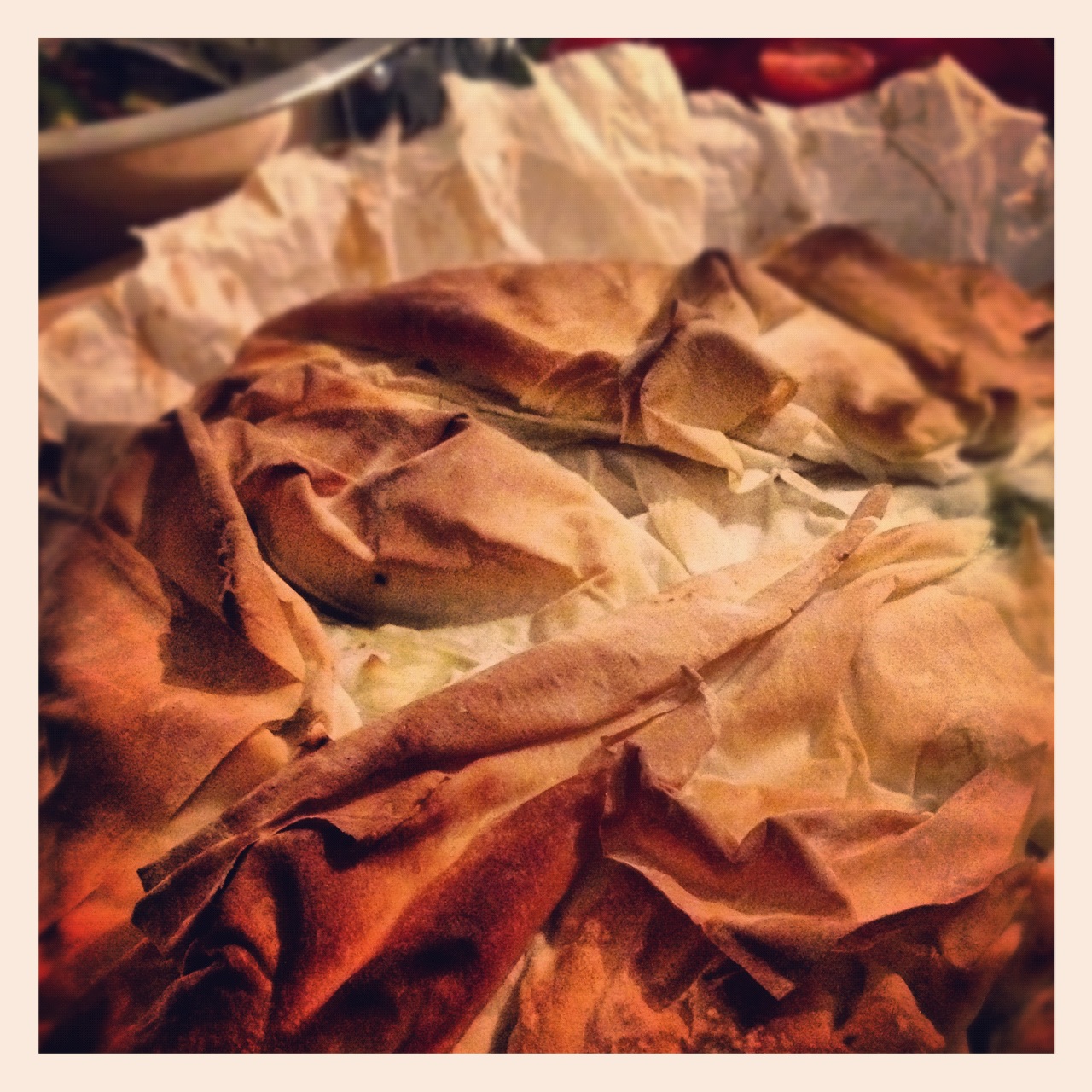 The filling of this pie is cinnamony and subtly spicy which makes it so tasty. However, even though the filling is great, this pie could really be any stew with Filo scrunched up and spread out on top. It makes a plain pie look pretty sexy and the crispness of the pastry complements the soft stew. It's even on the list for a winter dinner party, especially if we can do individual ones!