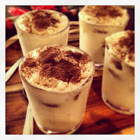 Once churned, it's time to layer the gelato and soaked savioardi biscuits;