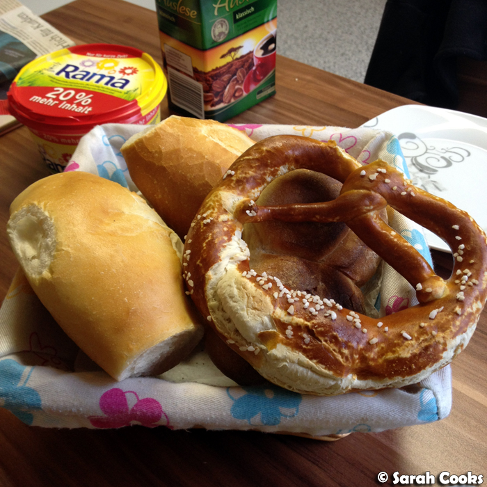 Although I totally love the pretty presentation and generous servings of German cakes, I'm much happier with a plain-old salt-crusted pretzel or a normal white Brötchen (bread roll)!